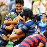 後半5分、同志社大学がテンポアップ、ラックを連取。たまらず京都産業大学はオフサイドの反則。京都産業大学のゴール前で得たラインアウトを同志社大学FWはモールで攻める。これをきっちり押し込んで②がトライ。⑩のゴール成功し、21対21と追いついた。