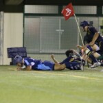 昨年は終盤の第6節での対戦でスクラムで近大を圧倒した立命館が36-8と勝利し、大学選手権出場を決定づけた。昼間の蒸し暑さは残るものの時おり涼風が吹き抜ける18時45分からのナイトゲームには2000人を超す熱い大学ラグビーファンが鶴見緑地に駆けつけた。試合は立命館SO田中健登のキックオフで幕を開けた。
