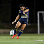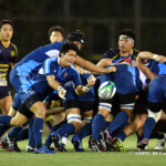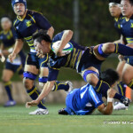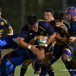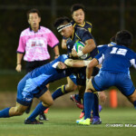 後半も先手を取ったのは近大。開始直後の1分、ゴール前30m付近でSO喜連の蹴ったパントのこぼれ球を右FL仁科伸明が拾いそのままインゴールに抑え28-12と点差を拡げる。対する立命館も直後の6分、FWラッシュからNo8中村亮介がトライを返し28-19と迫るが、その後、両チーム1トライずつを挙げ、最終的には前半のリードを守った近畿大学が35-26と昨年の雪辱を果たして初戦を飾った。