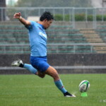 この後、神戸製鋼はクボタ反則にタッチ・ラインアウトからのモールでの得点パターンを切り替えPG狙いに切り替えた。29分にHL中央付近から、36分には22mL左中間からSO山中がPGを決め5-13と引き離しにかかる。しかし、クボタも前半終了間際40分、神戸スクラムでのニーリングダウンで得た反則からPGをSO森脇秀幸が決め8-13の5点差とし前半を終えた。