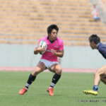 後半22分、相手22mライン付近のラックから⑳尾本がサイドをうまく抜け出し、そのままトライ、19−10とする。