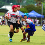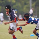 試合は結果表の通り、1日目の90点差が最高で、県協会並びに各チームの指導関係者の皆様の努力による、選手個々へのラグビーに対する姿勢がここに現れてきているのかなと見受けます。その一方で、勝利にこだわりすぎたチームも有り、タックルに入る姿勢、またボールを奪う時の姿勢等々、安全対策面で心配になる場面も多々見受けられました。