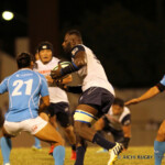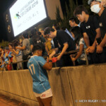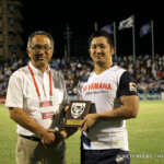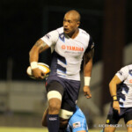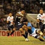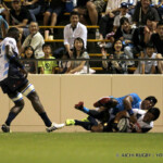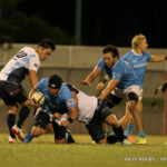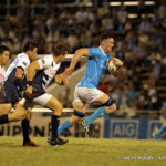 後半40分、ヤマハ発動機がキックを織り交ぜ、波状攻撃をかけゴール前に攻め込む、最後はフォーワードがパワープレーに持ち込み、最後は⑯名嘉がトライ、⑪ゲラードのG成功し、10-38とヤマハ発動機勝利でノーサイドとなった。