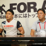 さらに、前半26分、ヤマハ発動機が相手陣深くの豊田自動織機のキックを④大戸がチャージ。こぼれたボールを⑦山路が押さえてトライで、7-12とリードする。