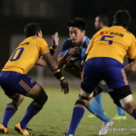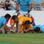 シャイニングアークスは、後半15分、キックカウンターから左に展開、⑬カラウリアヘンリーが抜けトライ、ゴール成功で19−22と逆転に成功する。