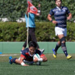 前半31分、22m付近からSH人羅からSO光部に渡りCTB阿部が鋭く切り込みゴール前まで持ち込み、フォローに入ったSH人羅が右中間に先制トライ。