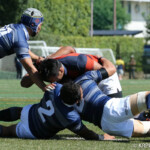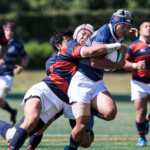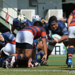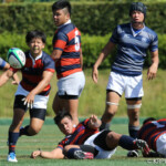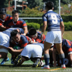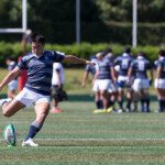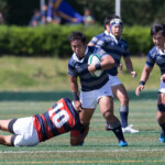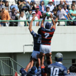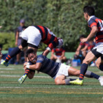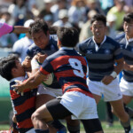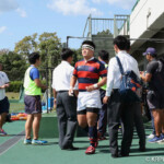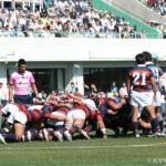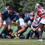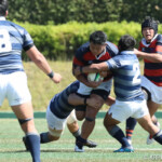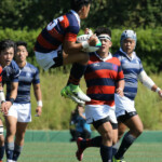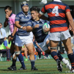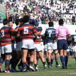 巻き返したい同志社大もゴール前まで攻め続け、再三のペナルティを全員でアタックするが、あと一歩及ばずノーサイド。