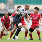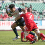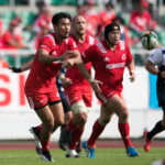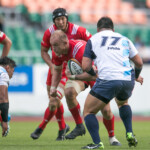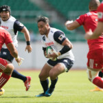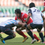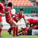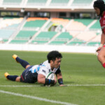 ようやくヤマハは27分、敵陣ラインアウトからの連続攻撃で、最後はSH矢富がラックから右WTBの伊東力にロングパスしゴール右隅にトライ。(ゴール失敗)19-28と点差を詰め寄る。