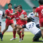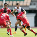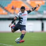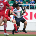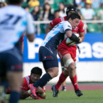 さらに39分、自陣10m右側のヤマハのラインアウトのこぼれ球をHIAでエリスと交代したSH梁が敵陣深くキック、LO安江がボールを取りそこから左に展開。最後はWTB正面がディフェンスのインを突き左中間にトライ。ゴールも成功し7-21と点差を広げ前半が終了する。