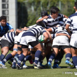 後半に入っても、関大は相手陣で試合を進める。10分、ゴール前5m左で得たLOからモールを形成、最後はHO2番西選手が押さえ、ついに17-17。SO10番北田圭史選手のGも成って逆転に成功。