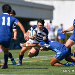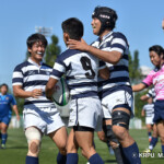 試合は近大が7分、相手G前5mのスクラムから右へ展開、WTB14番井川太貴が幸先良くトライを奪い先制。