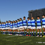 ロスタイムにも相手陣ゴール前20m左中間ラックから、FW、BKが連携よくつないで追いすがった。前半は33-12で折り返した。