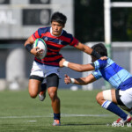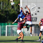 後半も先にスコアした京産大は再び試合のペースを掴み、15分にもSO10番中村悠人選手がディフェンスの僅かな隙を突き、大きくラインブレークしWTB11番濱田選手がこの日3本目のトライをあげ45-12と摂南大を突き放す。