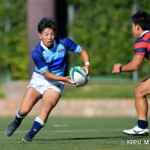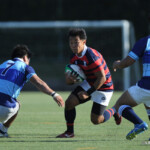 このトライで勝敗が決したかに思われたが、前半同様、摂南大フィフティーンの気持ちは決して折れることはなかった。34分、京産大陣20m付近からSO10番山田吏樹選手がWTB14番藤井雄大選手に絶妙のキックパス。トライに結びついた。京産大はロスタイムにも相手陣ラックから得点を重ねて最後は52-26と差がついた。