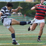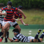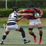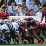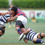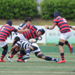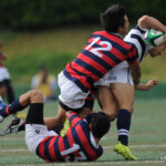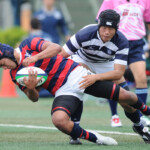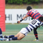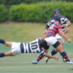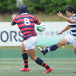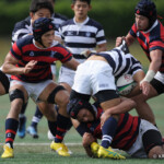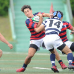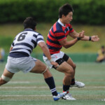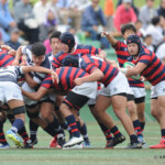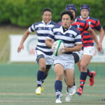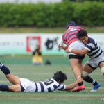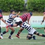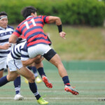 自慢のフォワードとバックスが機能し危なげないスタートを切った京都産業大学と粘り強いデフェンスから状況判断の優れたフォワードとバックスを持つ関西大学の戦いが宝が池公園球技場で行われた。
