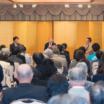 出席者は坂田会長、大畑大介さん(ラグビーワールドカップ2019アンバサダー、テストマッチ通算トライ数の記録保持者【69トライ】)、ラグビージャーナリストの村上晃一さんの進行で、現役時代の思い出やラグビーワールドカップ2019(以降WC)への期待やラグビーの魅力について語り合いました。