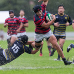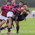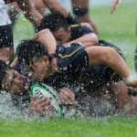 終始大雨が降り続き、グランドは最悪と言っても過言ではないコンディションであったが、両チームともハンドリングミスも少なく、締まった試合を見せてくれた。MOMには、攻守に活躍した⑧NO.8武田知大が選ばれた。