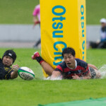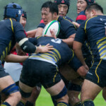 後半も序盤は、前半の延長戦上のような展開が続く。こうした中、京産大は8分にスクラムのアングルの反則で得たペナルティからゴール前10Mのラインアウトのチャンスをつかんだ。前節はなかなか押し切れないラインアウトモールであったが、ここはゴリゴリと力強く押し込み、モールから出たボールを⑪WTB濱田将暉が右中間に飛び込む。ゴールも決まり(7-14)とした。これが試合を決するトライとなった。