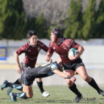 すると、札幌大学は後半35分に⑪小笠原がBK展開からトライ、さらに、後半40分に⑧佐藤が縦突破からトライ(ゴール成功)し、勝負を決める。