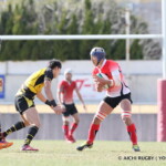 その後、ここまで得点を奪えなかった東京学芸大学は、前半24分、⑩新井が相手のタックルを振り切り、左中間にトライ、⑫高橋のゴールキックも成功し、7−7の同点とする。