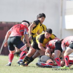 その直後の後半28分、東京学芸大学は、⑲田島がトライ、ゴールキックも成功し、28−19と点差を戻す。