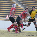 さらに、札幌大学は、後半24分に⑫須貝が自陣10mライン付近から独走し、中央にトライ、ゴールキックも成功し、28−12とする。