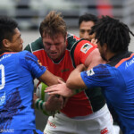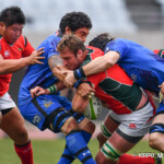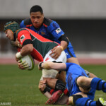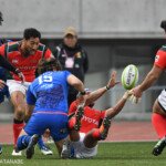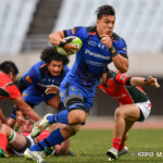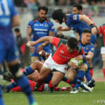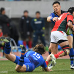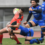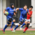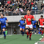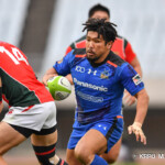 後半の先制はパナソニック。9分、SO山沢がPGを決め17-3とし引き離しにかかる。このままパナソニックが優位に進めると思われたが、トヨタは、後半15分から入替で入ったPR18番伊尾木洋斗がスクラムでプレッシャーをかけ、徐々にペースをつかむ。16分にWTB11番ヘンリー・ジェイミーが巧みに相手をかわしトライを挙げ8-17と追撃を開始。25分にはSOクロニエがPGを決めて11-17として食らいつき、その後は一進一退の見応えのある攻防が続いた。