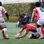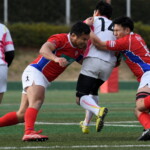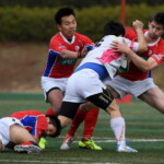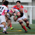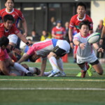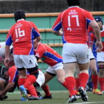 粘る駒場は62分、六甲陣22m中央からPGを決め(12-9)追いすがると、残り10分では六甲ゴール前でフェイズを重ね、両チーム必死の攻防となるも、六甲の分厚いディフェンスはゴールを割らせずタイムアップ。辛くも準決勝進出を決めた。