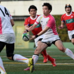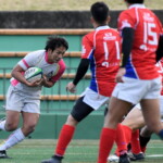 後半も、駒場ディフェンスの粘りに遭い、苦しむ六甲は47分ラックから出たボールを、CTB12前田がインゴールへショートパント、インゴールに転がったボールをWTB11三木が押さえT、(G不成功5-6)ようやくスコアすると、続く54分自陣22m付近での相手ラインアウトからのこぼれ球に反応した六甲は、BKが繋ぐとCTB13村尾が60mを快走し、左中間へT(G成功12-6)と逆転、初めてゲームの主導権を握る。