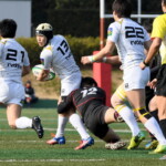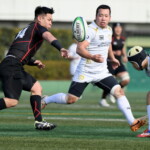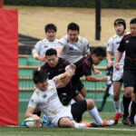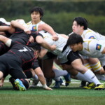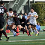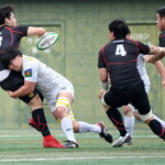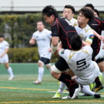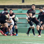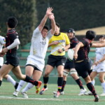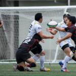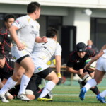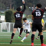 ブレイクダウンで人数をかけず、ワイドにボールを動かすRKUは、21分文の里陣ゴール前から連続ラック、最後はCTB12米澤がT。(G成功7-14)文の里も負けじとフェイズを重ねるが、RKUも堅いディフェンスで応戦、暫くスコアは動かない。