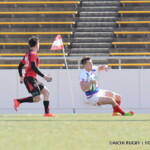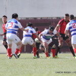 その後も一進一退が続くが、北海道は、後半19分敵陣10mライン付近から⑨君島が左へチップキック、ゴール前で⑧ジョセが拾い左中間にトライ、⑪平川のゴールも決まり、0-18とリードを広げた。