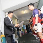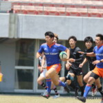 後半に入り、1分、大阪が、福井に攻め込まれるも自陣ゴール前でターンオーバー、フェイズを重ね相手陣へ、22m付近で形成されたラックから⑤岡田が抜け出しトライ(ゴール成功)、7-14とする。