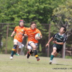 さらに、前半9分、自陣10m付近の攻防から、②伊東が抜け出し独走しトライ(ゴール成功)。