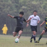 降りしきる強い雨とグラウンドコンディションから前後半7分で行われた決勝。