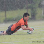 続く、愛知戦では、前半1分に、フェイズを重ね左サイドから右へ展開すると、⑫保井がスピードに乗りトライを獲得すると、⑫保井はこの試合3トライをあげ、三重は前半4トライ、後半3トライで、41-0で2試合連続の完封勝利とする。