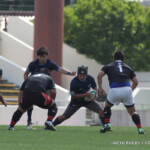 その後は双方、ラインアウトのミスが目立つが後半22分、学生選抜は相手陣ゴール前のスクラムを押し込みそのままトライ、22-24と再度逆転に成功する。