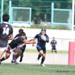 相手陣で優位に試合を進める学生選抜は前半5分、相手陣右サイドでスクラムを得ると前進、アドバンテージを得ながら、⑩市川のキックパス、左中間で⑭吉田が抑えトライ、コンバージョンも成功し0-7と先制する。