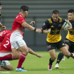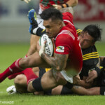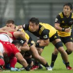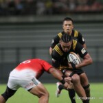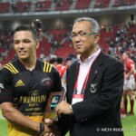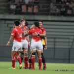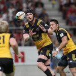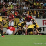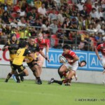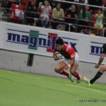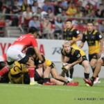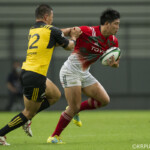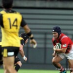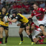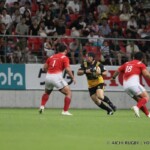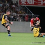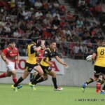 すると、後半3分、サントリーのハンドリングエラーから⑬イエーツが反応、⑪ヘンリーへ繋ぎ左中間にトライ、17-10とリードする。