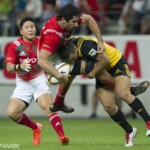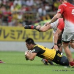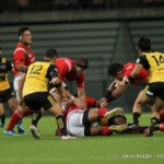 後半12分、サントリーは⑧ショーンが危険なタックルで一時退場、そのペナルティーからPGを選択、⑩ライオネルが成功させ20-10とリードを広げる。