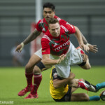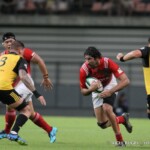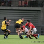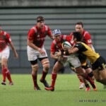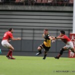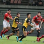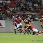 さらに攻撃を継続するサントリーは、後半31分、FW連続攻撃から右に展開、㉒田村が数的優位を冷静につきトライ(ゴール成功)、25-20と追い上げる。