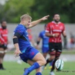 するとレッドドルフィンズは、前半28分、キックカウンターから⑮ギリースがショートキック、そのまま足にかけゴールポスト中央にトライ、コンバーションも成功し0-7と先制する。