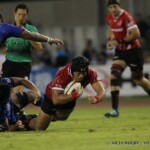 14人になったシャトルズに対しレッドドルフィンズは、後半26分、ラインアウトモールから前進し、フェイズを重ねると⑧ニリ・ラトゥが左中間に飛び込みトライ、コンバージョンも成功し、12-14と逆転に成功する。