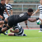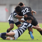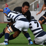 下馬評通り先手を取ったのは天理。開始直後の3分、いきなりFW・BK一体となった攻めで関大ゴール前に迫ると、最後は1年生LO5番アシペリ・モアラがいとも簡単に関大ディフェンス網を突き破ってトライを挙げる。関大も直後の6分にCTB12番津田剛希のトライで一旦同点とするが、以後は一方的、圧倒的な天理のトライラッシュとなった。今年度から3名に増えた外国籍選手枠のLO5番アシペリ・モアラと№8ファウルア・マキシ、CTB13番シオサイア・フィフィタらがたびたび大きなゲインを繰り返し、最後は高速バックスリーが立て続けにフィニッシュ。前後半共に9トライずつを挙げ、116-7と関大を完膚なきまでに圧倒した。