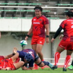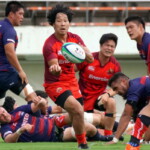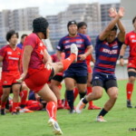 後半7分、風上に立った近鉄はペナルティからタッチで攻める。右ゴール前5mラインアウトからモールを組みHO②高島卓久馬が右中間に押さえ、後半も最初のトライは近鉄。ここもGをパトリックが決めて28-0。徐々に差が開きかかった。更に、13分に後半途中出場のLO⑲マイケル・ストーバーク、18分にセミシ、23分に高島、31分にマイケル、39分になおも後半途中出場WTB矢次啓佑がトライを挙げた。最後のGを後半途中出場のCTB野口大輔が決めて55-0で近鉄が圧勝、4連勝とした。