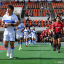 メインスタンドに立つと左から右へ北よりの強風が吹く万博記念競技場で開かれたトップチャレンジ第5節。リーグトップを行く近鉄に勝ち点1の差で追うNTTドコモレッドハリケーンズと、ここまで勝ち点4と上位に勝って上昇のきっかけをつかみたい九州電力キュウデンヴォルテクスの対戦となった。