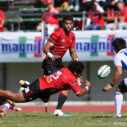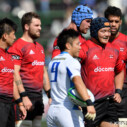 その後も12、19、22、26、31、33分とノーホイッスルトライや強烈な縦攻撃などで6トライを決めて前半は50-0で終えた。