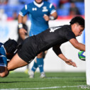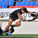 先制したのはやはり王者の天理大。前半7分にゴール前のラインアウトからモールを形成。安定したモールで近畿大FWを圧倒しゴールラインに迫り、最後はキャプテンのHO②島根一磨が抑えてあっさりと先制した。その後もFWの核、№8⑧ファウルア・マキシの連続トライなど合計3トライを重ね、0-26で前半を折り返した。