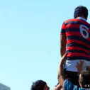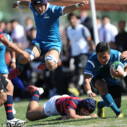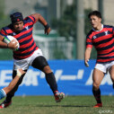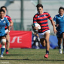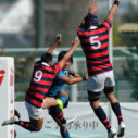 後半に入っても、開始から近畿大は果敢にパスをつないで京産大陣に攻め込むが、ここで痛恨のインターセプト。近畿大のスキを見逃さなかった京産大⑭右WTBニコラス・ホフアがパスカットし中央にトライをあげた。これで試合の流れは完全に京産大に。その後、京産大は5分、8分、22分、30分とトライを重ね点差を広げ、43分にもだめ押しのトライ。近畿大も2トライを返す健闘を見せたが、ディフェンスが徐々に甘くなったこともあり、インターセプトされてからの失点はあまりに大きく、29-48でノーサイドとなった。