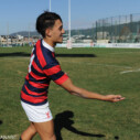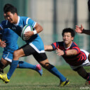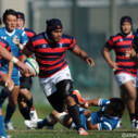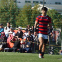 第4節は新装と成った東大阪市花園ラグビー場の第2グラウンドが会場。すばらしい秋晴れのもと、これまで勝ち星がなく前節、天理大学に0-50と完封負けした近畿大学と、大阪体育大学に76-15と完勝、3連勝の京都産業大の対戦になった。近畿大、京産大とも勝利して後半戦に弾みを付けたい。