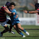 この試合は近畿大の健闘が目立った。近畿大は前半19分、相手のスキを突いてゲイン、京産大陣22m中央で得たPGを⑩SO、福山竜斗が確実に決めて幸先良く先制した。その後、京産大はラインアウトからのモールやゴール前ラックからのチャンスをものにして2トライを奪って波に乗るかと思われたが、近畿大は真摯なディフェンスでしのぐ。迎えた35分、相手ゴール前30m右中間ラックからの展開やロスタイムに入った44分には京産大のお株を奪うラインアウトからのモールで2トライを奪い、前半は17-10とリードして終えた。